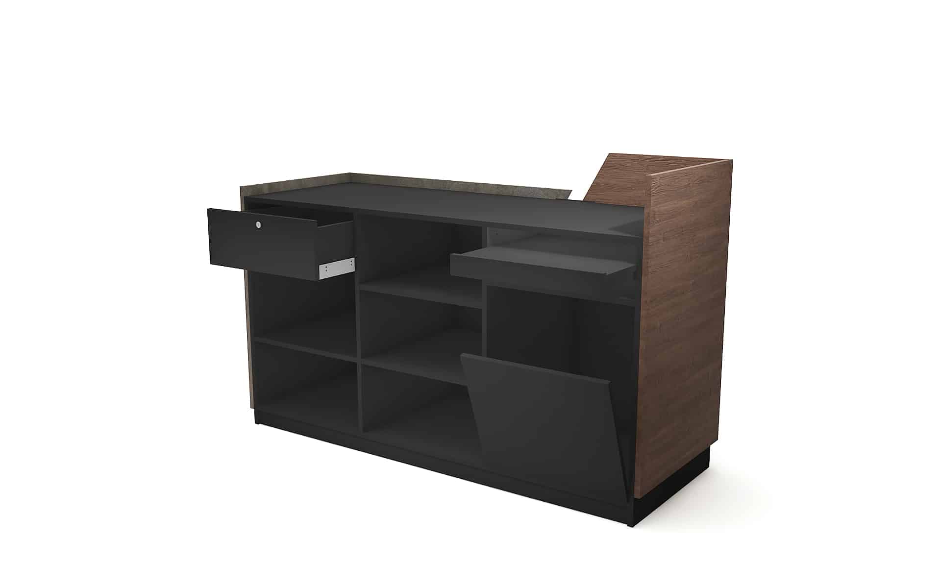Ein eleganter Kassentisch, der Funktionalität mit modernem Look verbindet. Die Theke ist in zwei Maßen erhältlich: