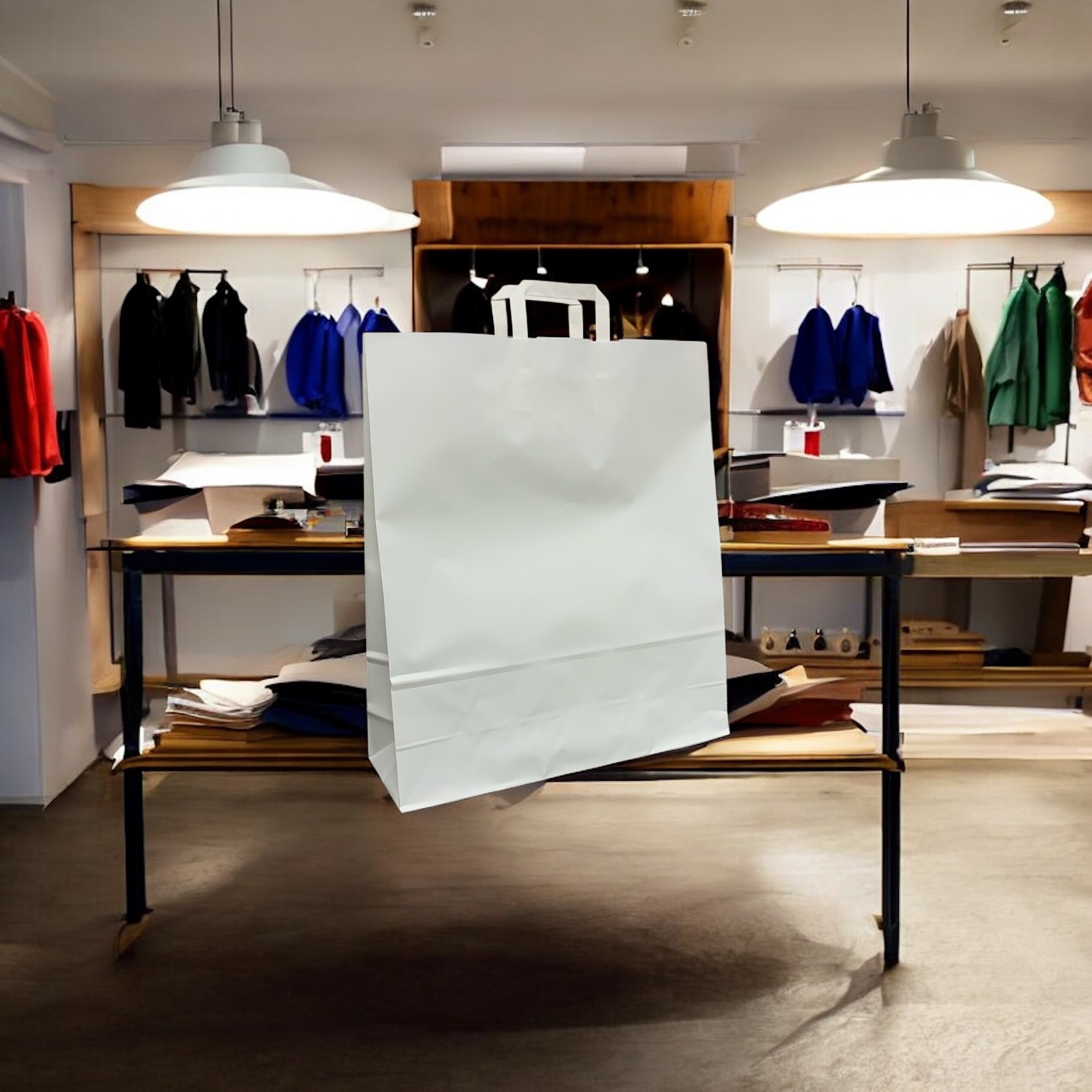 Papiertragetasche – Weiß, mit Flachhenkel (VE: 25 Stück)