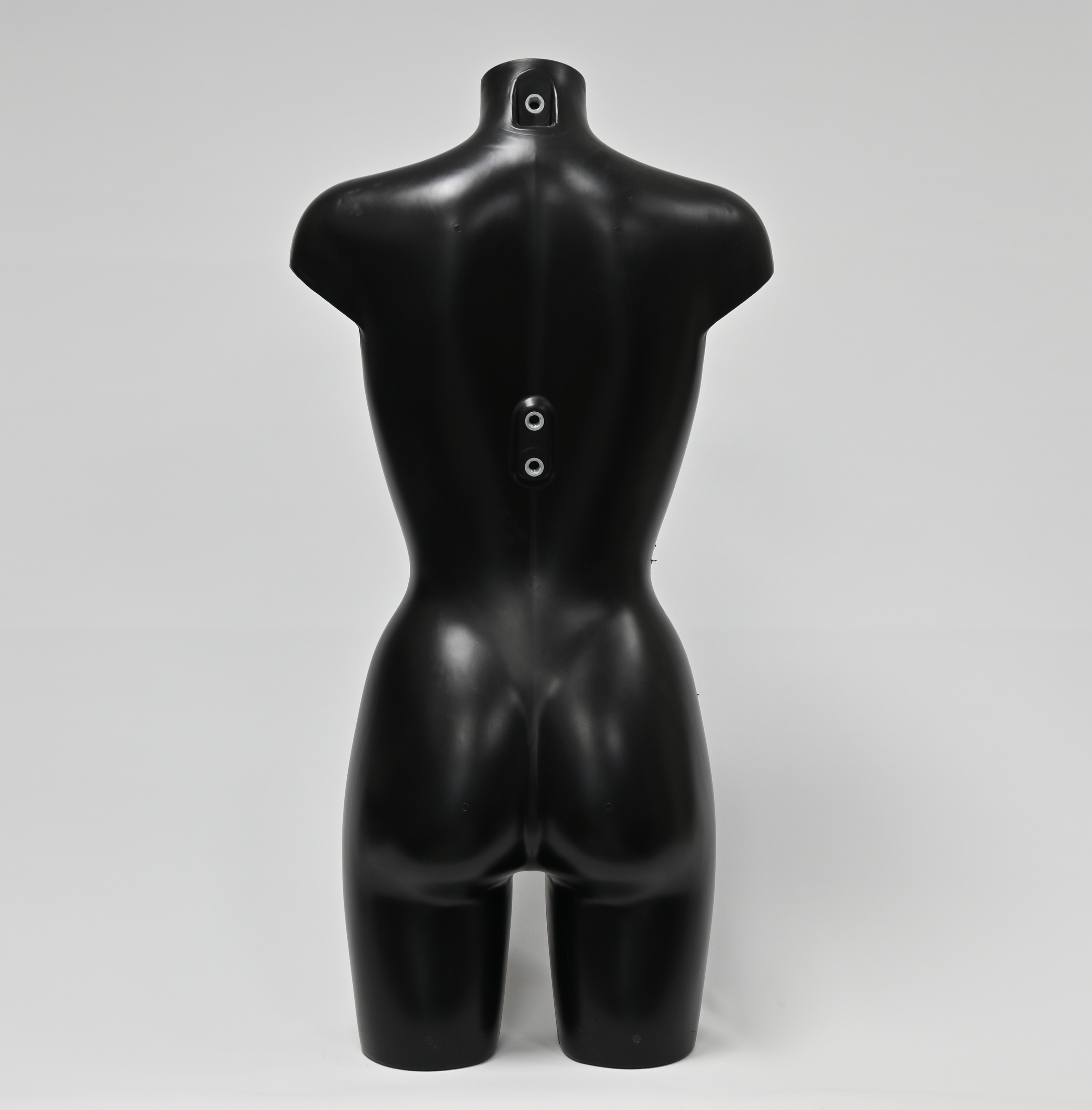 Dieser Damentorso ohne Fuß aus robustem Kunststoff eignet sich hervorragend für die Präsentation von Bekleidung und Accessoires. Mit einer Rücken- und Nackenaufnahme bietet der Torso eine stabile Basis, um verschiedene Kleidungsstücke präzise und ansprechend zu präsentieren. Der Torso kommt ohne Beinadapter, was ihn ideal für Oberbekleidungspräsentationen macht.
