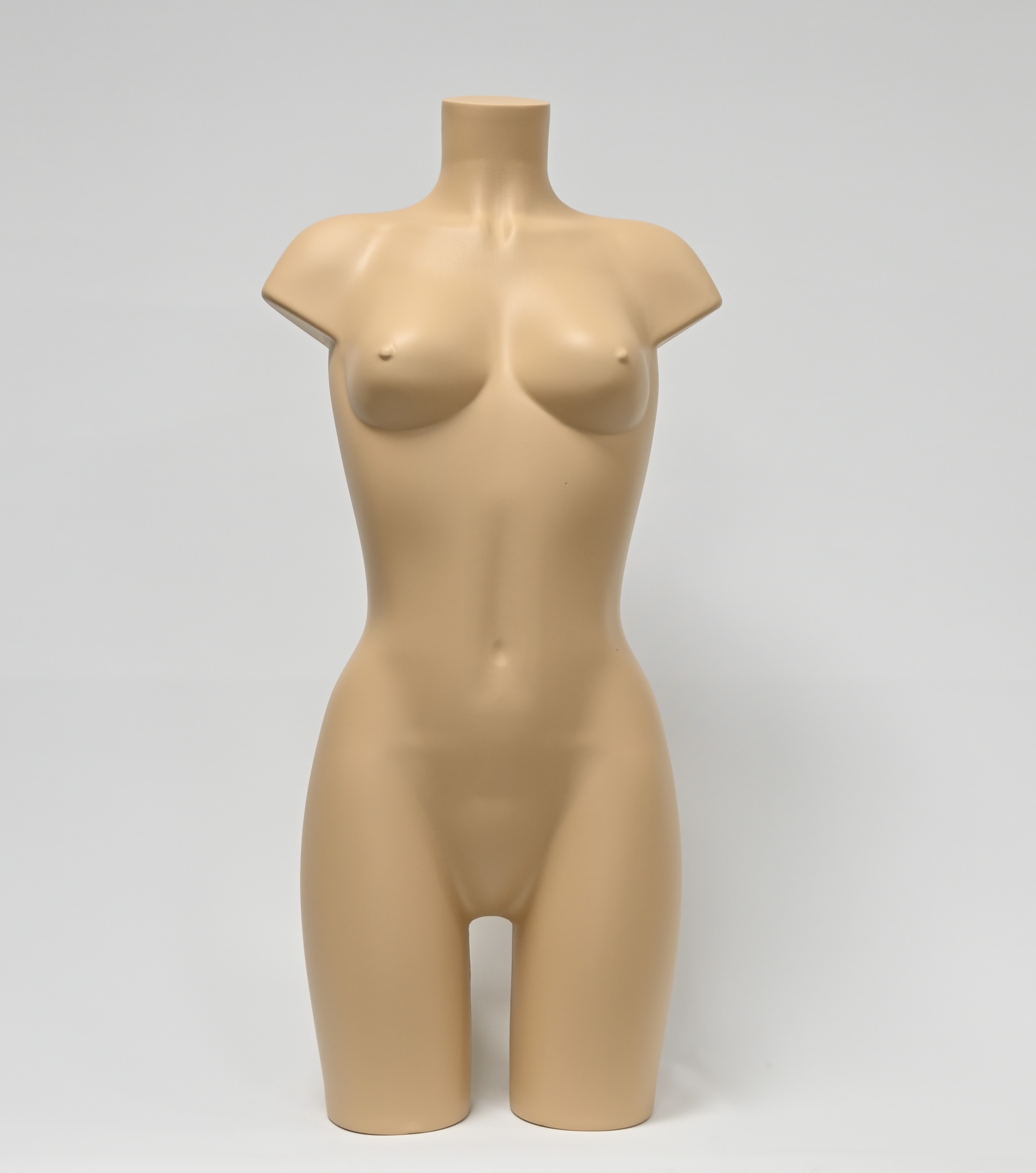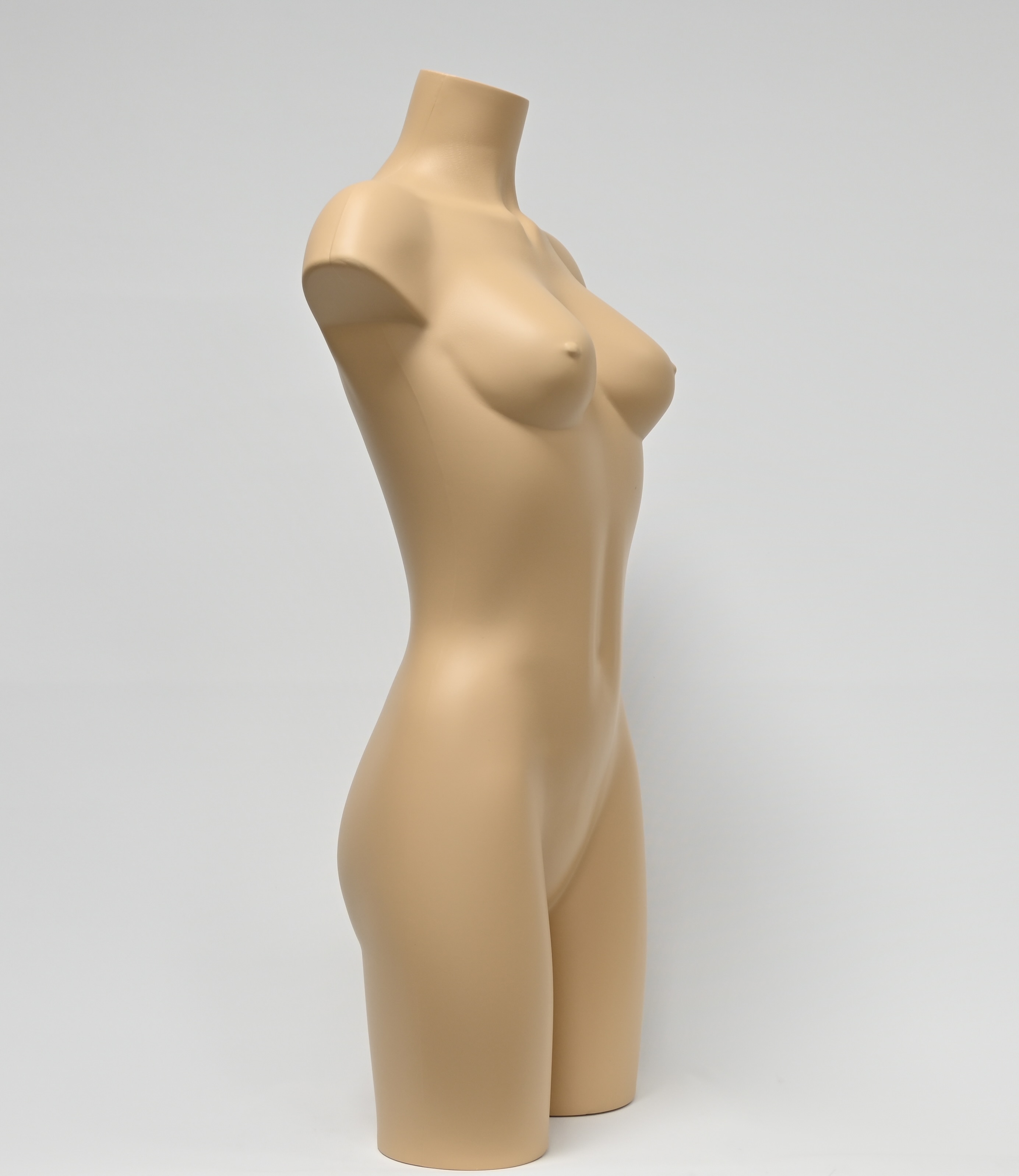 Dieser Damentorso ohne Fuß aus robustem Kunststoff eignet sich hervorragend für die Präsentation von Bekleidung und Accessoires. Mit einer Rücken- und Nackenaufnahme bietet der Torso eine stabile Basis, um verschiedene Kleidungsstücke präzise und ansprechend zu präsentieren. Der Torso kommt ohne Beinadapter, was ihn ideal für Oberbekleidungspräsentationen macht.