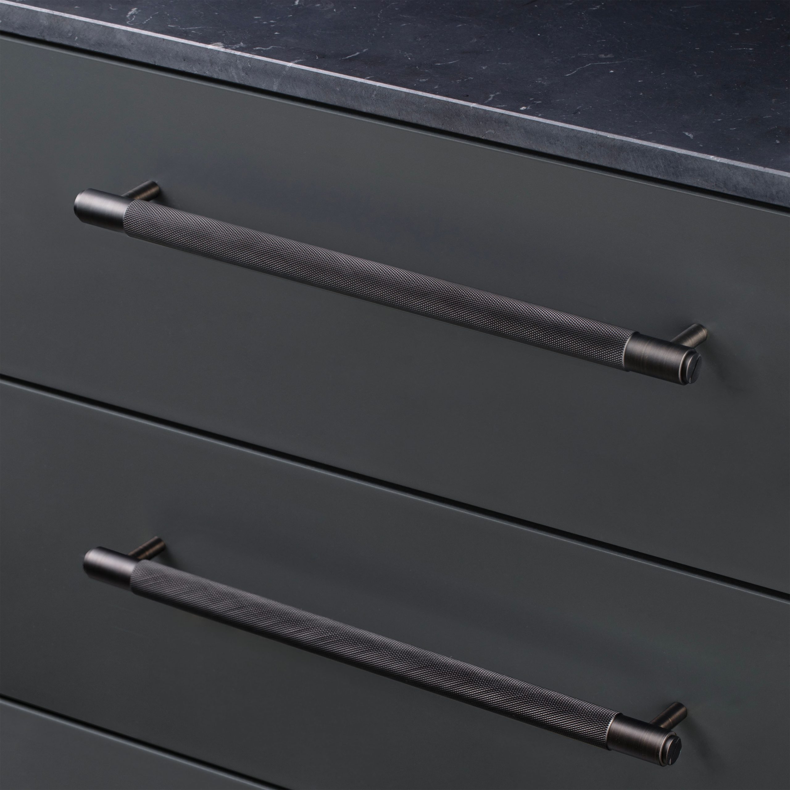 Dieser Möbelgriff aus massivem Metall in der edlen Smoked Bronze-Ausführung verleiht Ihrem Möbelstück einen eleganten, modernen Look. Mit einer Länge von 260 mm und der charakteristischen Cross-Rändelung ist dieser Griff nicht nur funktional, sondern auch ein echter Hingucker.