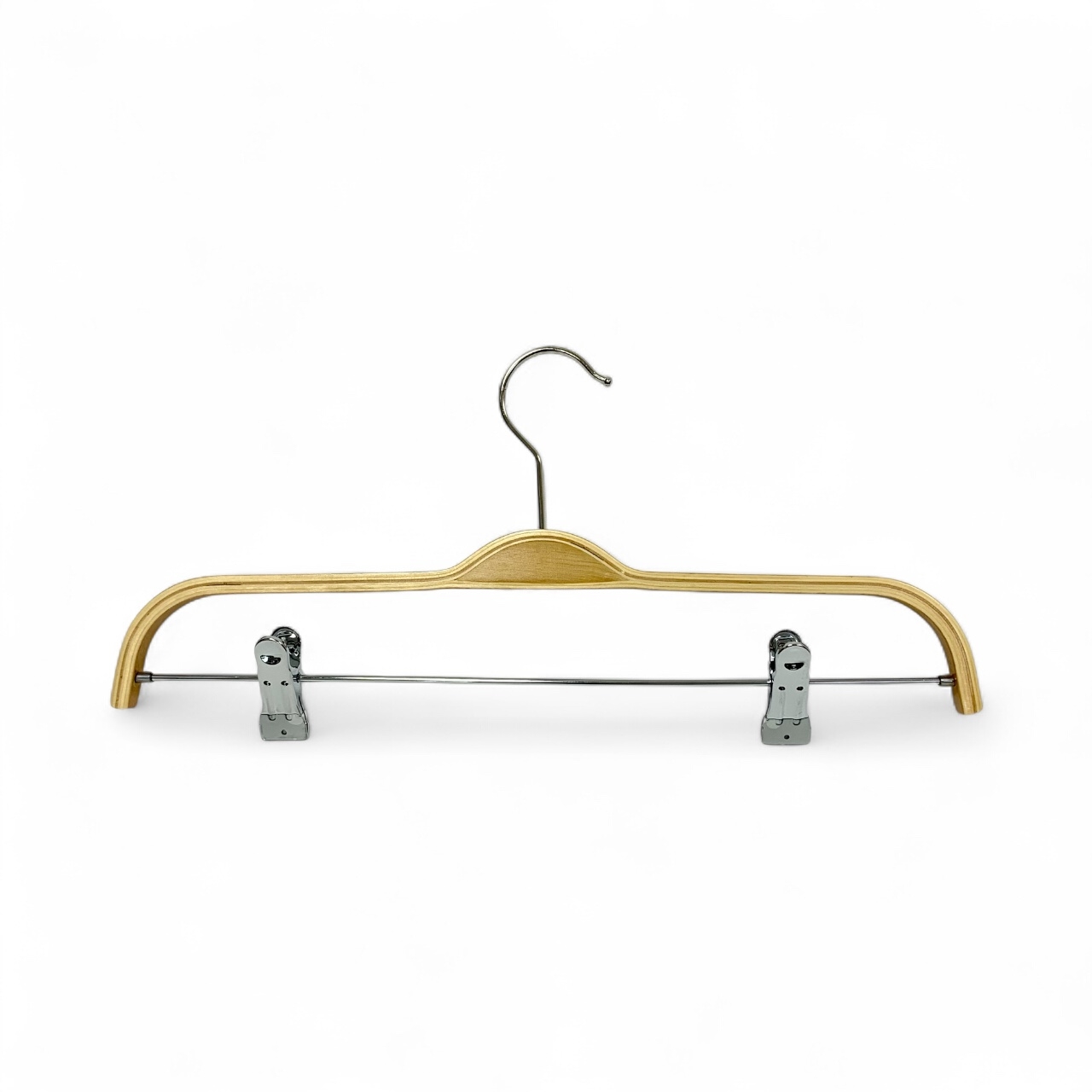Dieser hochwertige Clipbügel aus lackiertem Buchen-Schichtholz bietet eine sichere und stilvolle Präsentation Ihrer Kleidungsstücke. Mit einer klaren, natürlichen Holzoptik sorgt der Bügel für eine warme und elegante Atmosphäre in jedem Verkaufsraum. Ideal für eine professionelle Aufbewahrung von Röcken, Hosen und anderen Kleidungsstücken.