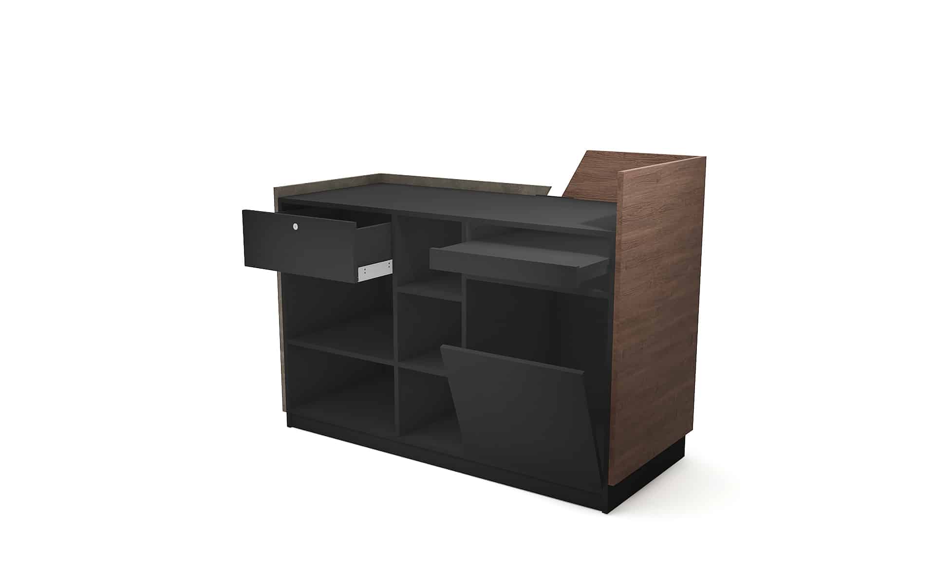 Ein eleganter Kassentisch, der Funktionalität mit modernem Look verbindet. Die Theke ist in zwei Maßen erhältlich:
